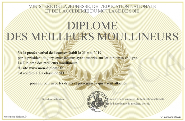 Envoyez par email votre Diplôme des meilleurs moullineurs personalisé