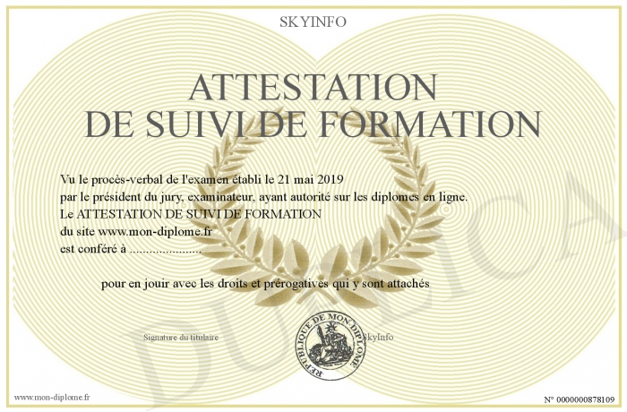 Envoyez par email votre ATTESTATION DE SUIVI DE FORMATION personalisé