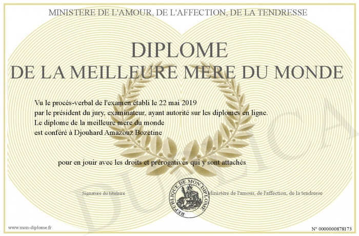 Envoyez par email votre diplome de la meilleure mere du monde personalisé
