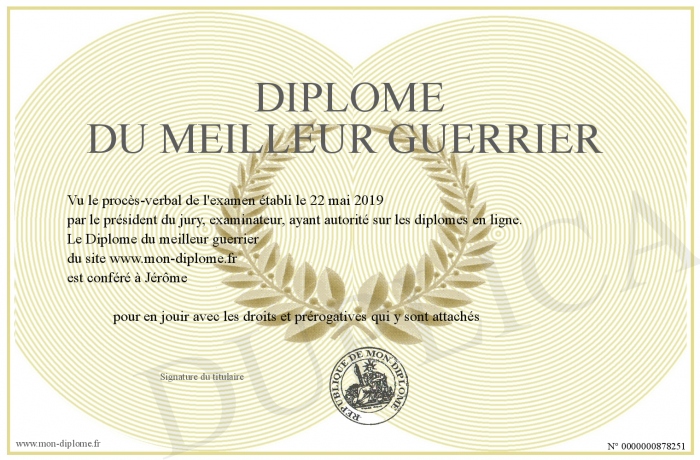 Envoyez par email votre Diplôme du meilleur guerrier personalisé