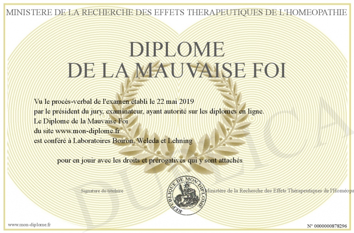 Envoyez par email votre Diplôme de la Mauvaise Foi personalisé