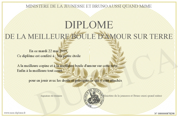 Envoyez par email votre Diplôme de la meilleure boule d'amour sur terre personalisé