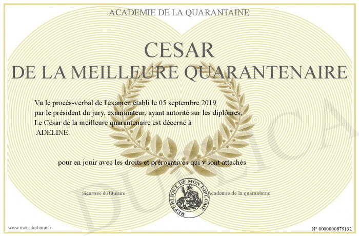 Envoyez par email votre CESAR DE LA MEILLEURE QUARANTENAIRE personalisé