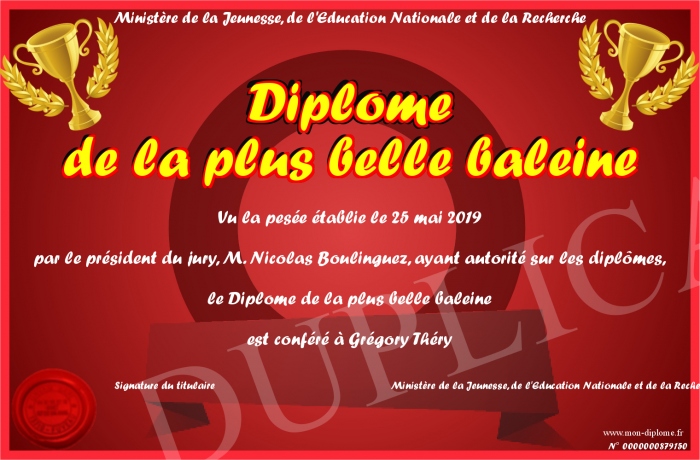Envoyez par email votre Diplôme de la plus belle baleine personalisé
