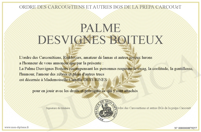 Envoyez par email votre Palme Desvignes Boiteux personalisé