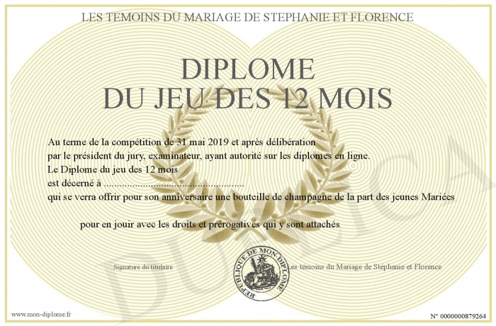 Envoyez par email votre Diplôme du jeu des 12 mois personalisé