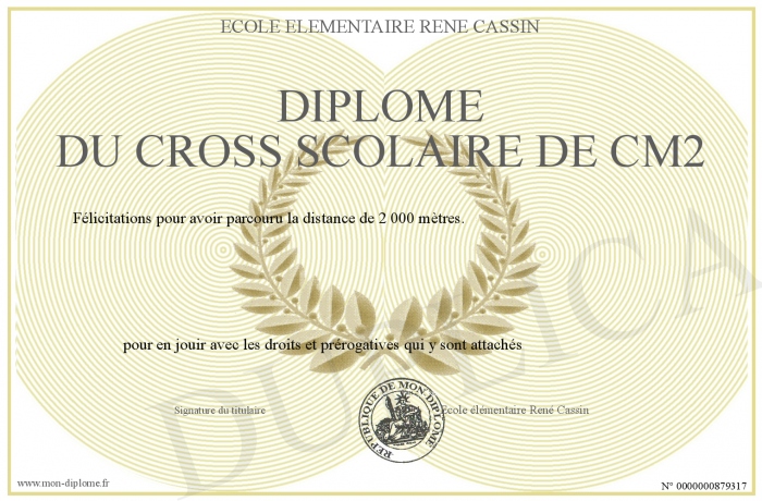 Envoyez par email votre Diplôme du cross scolaire de CM2 personalisé