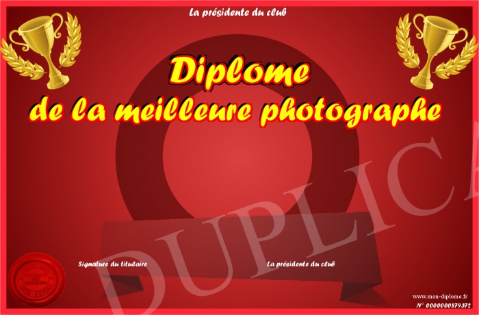 Envoyez par email votre Diplôme de la meilleure photographe personalisé