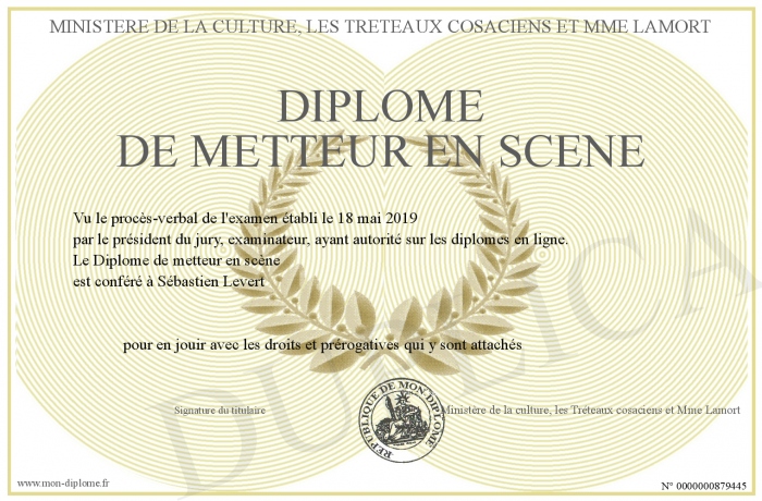 Envoyez par email votre Diplôme de metteur en scène personalisé