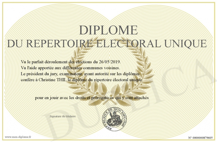 Envoyez par email votre Diplôme du répertoire électoral unique personalisé