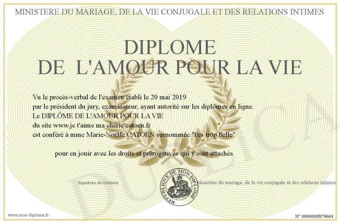 Envoyez par email votre Diplôme de l'amour pour la vie personalisé