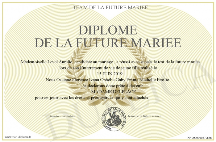 Envoyez par email votre Diplôme de la FUTURE MARIEE personalisé