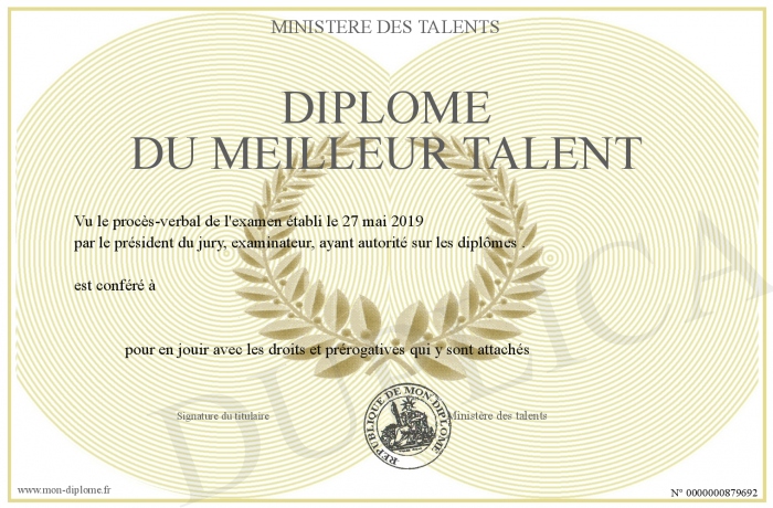Envoyez par email votre Diplôme du Meilleur Talent personalisé