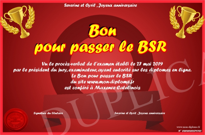 Envoyez par email votre Bon pour passer le BSR personalisé