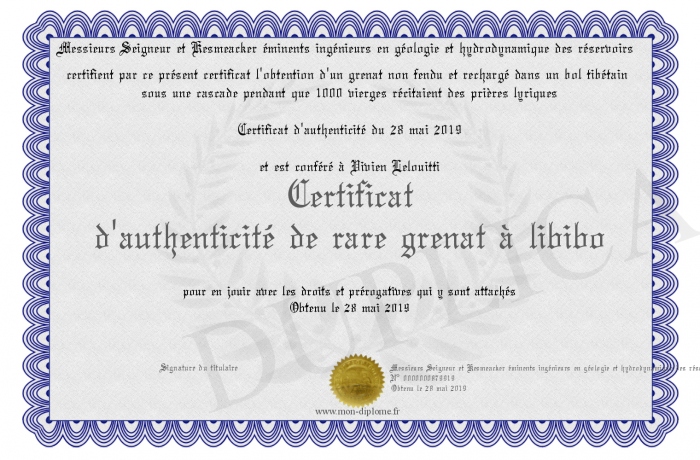 Envoyez par email votre Certificat d'authenticité de rare grenat à libibo personalisé