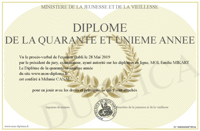 Envoyez par email votre Diplôme de la quarante et unieme année personalisé