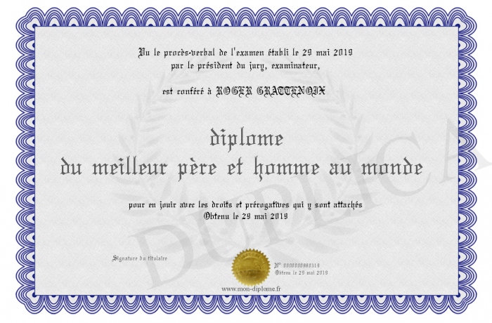 Envoyez par email votre diplôme du meilleur père et homme au monde personalisé