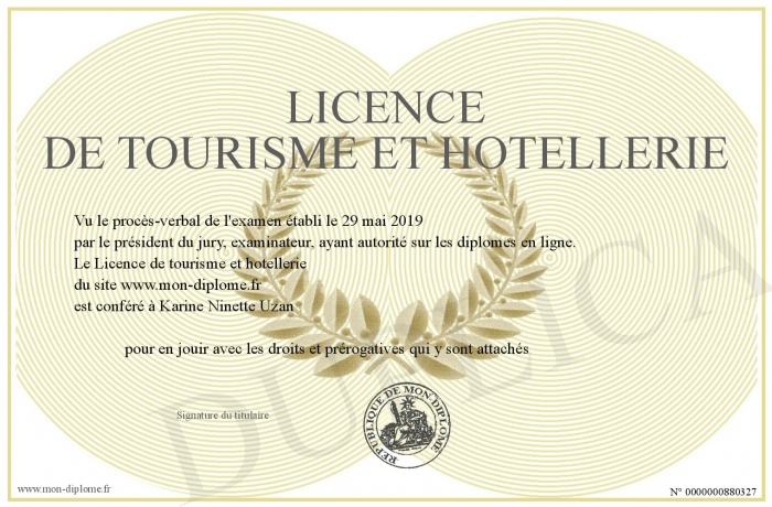Envoyez par email votre Licence de tourisme et hôtellerie personalisé