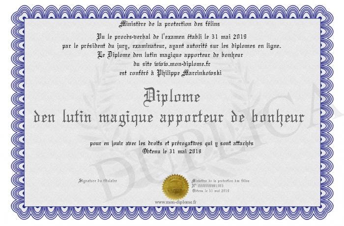 Envoyez par email votre Diplôme den lutin magique apporteur de bonheur personalisé
