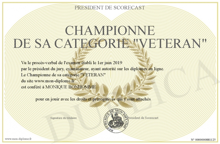 Envoyez par email votre Championne de sa catégorie -VETERAN- personalisé