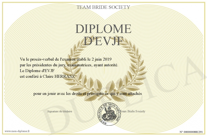 Envoyez par email votre Diplôme d'EVJF personalisé