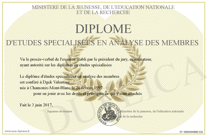 Envoyez par email votre Diplôme d'études spécialisées en analyse des membres personalisé