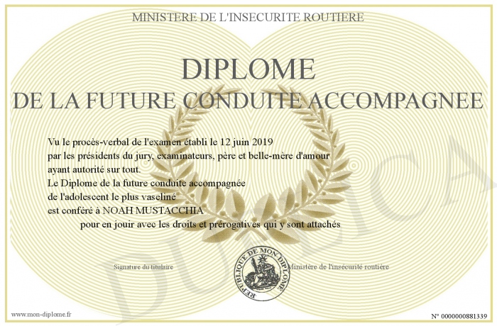 Envoyez par email votre Diplôme de la future conduite accompagnée personalisé
