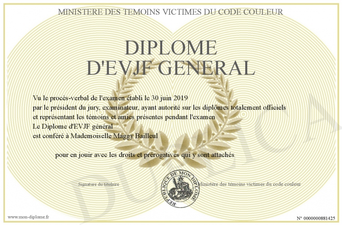 Envoyez par email votre Diplôme d'EVJF général personalisé
