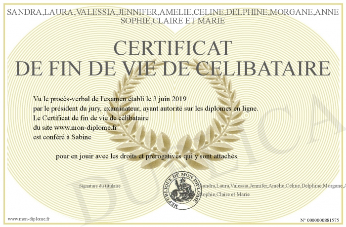 Envoyez par email votre Certificat de fin de vie de célibataire personalisé