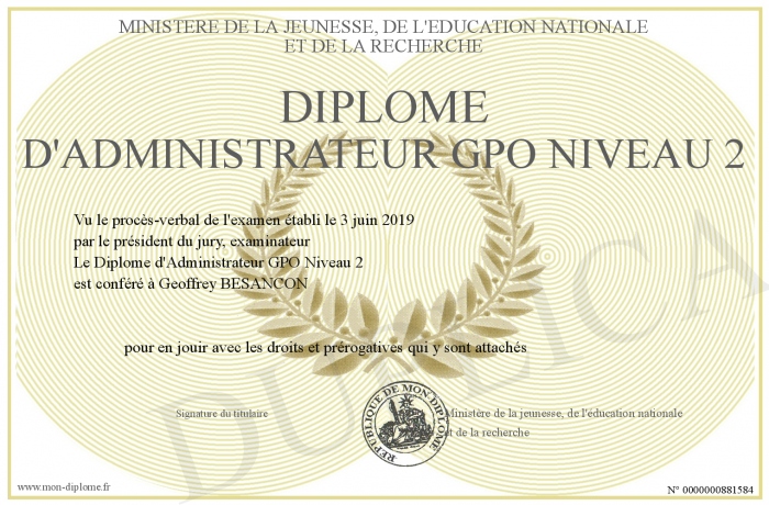 Envoyez par email votre Diplôme d'Administrateur GPO Niveau 2 personalisé