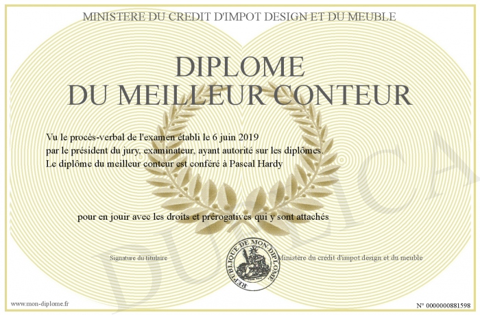 Envoyez par email votre diplôme du meilleur conteur personalisé