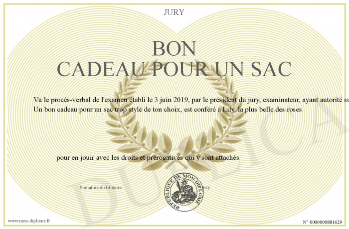 Envoyez par email votre Bon cadeau pour un sac personalisé