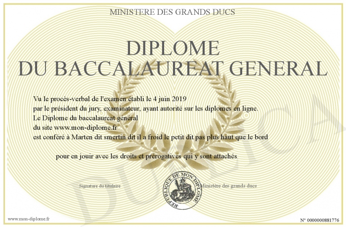 Envoyez par email votre Diplôme du baccalaureat général personalisé