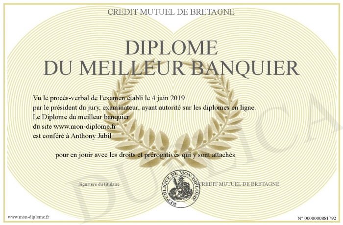 Envoyez par email votre Diplôme du meilleur banquier personalisé