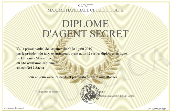 Envoyez par email votre Diplôme d'Agent Secret personalisé
