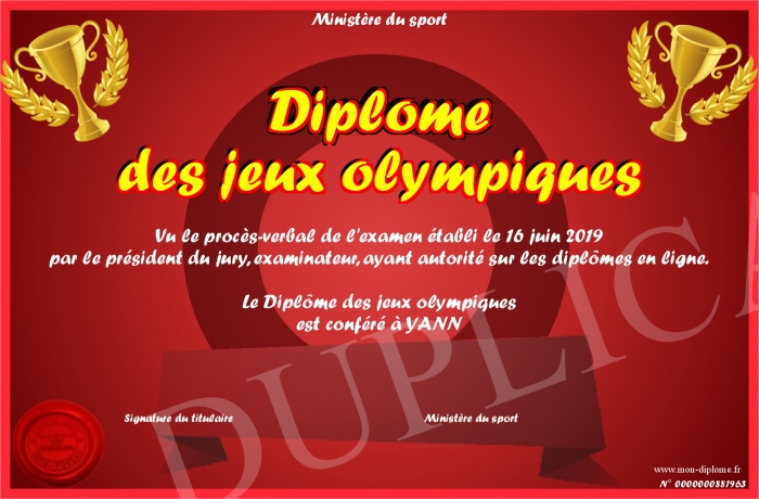 Envoyez par email votre Diplôme des jeux olympiques personalisé