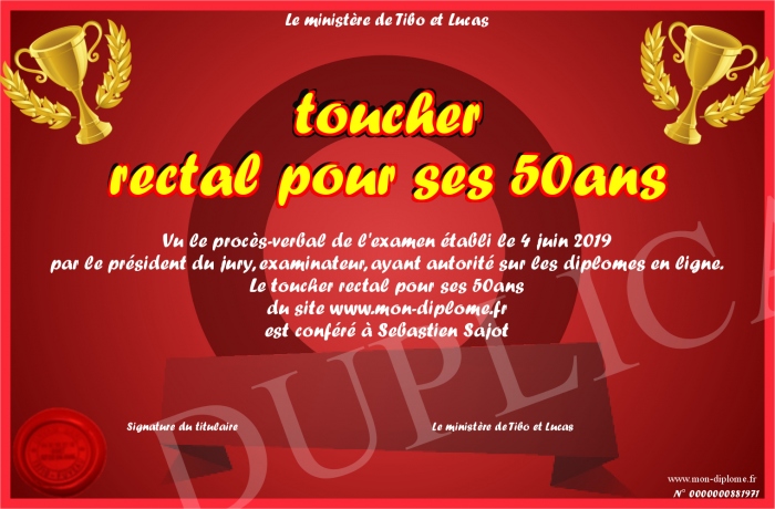 Envoyez par email votre toucher rectal pour ses 50ans personalisé