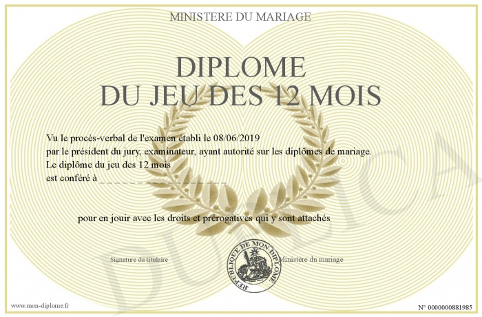 Envoyez par email votre Diplôme du jeu des 12 mois personalisé