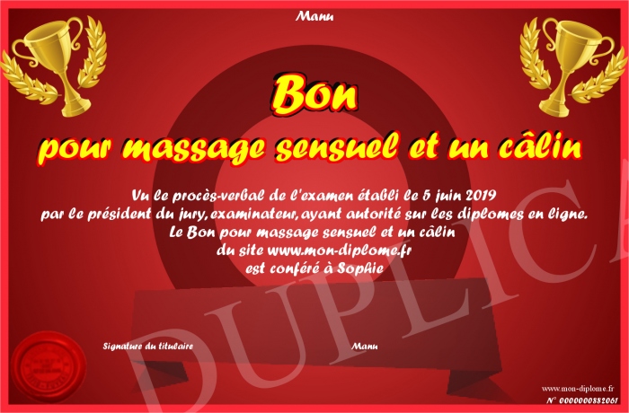 Envoyez par email votre Bon pour massage sensuel et un câlin personalisé
