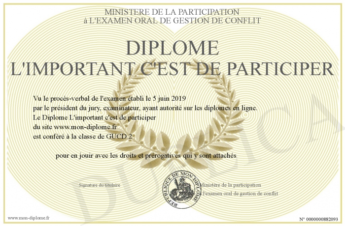 Envoyez par email votre Diplôme L'important c'est de participer personalisé