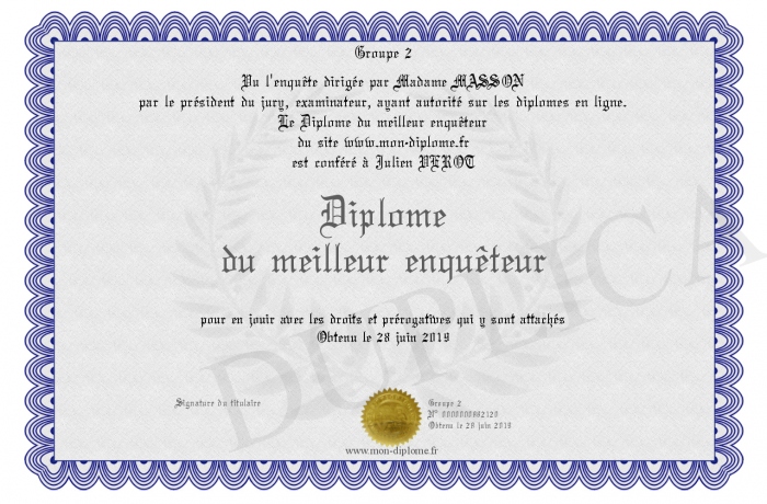 Envoyez par email votre Diplôme du meilleur enquêteur personalisé