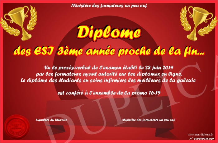 Envoyez par email votre Diplôme des ESI 3ème année proche de la fin... personalisé