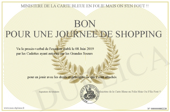 Envoyez par email votre Bon Pour Une Journée de Shopping personalisé