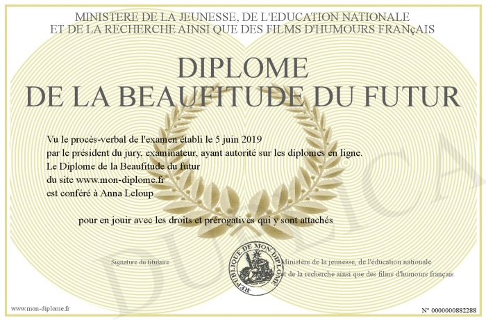 Envoyez par email votre Diplôme de la Beaufitude du futur personalisé