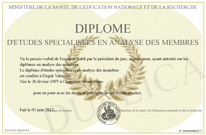 Envoyez par email votre Diplôme d'études spécialisées en analyse des membres personalisé