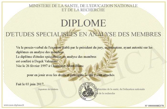 Envoyez par email votre Diplôme d'études spécialisées en analyse des membres personalisé