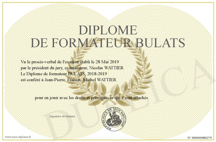 Envoyez par email votre Diplôme de formateur BULATS personalisé