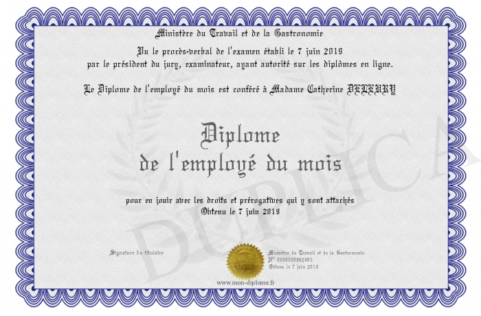 Envoyez par email votre Diplôme de l'employé du mois personalisé