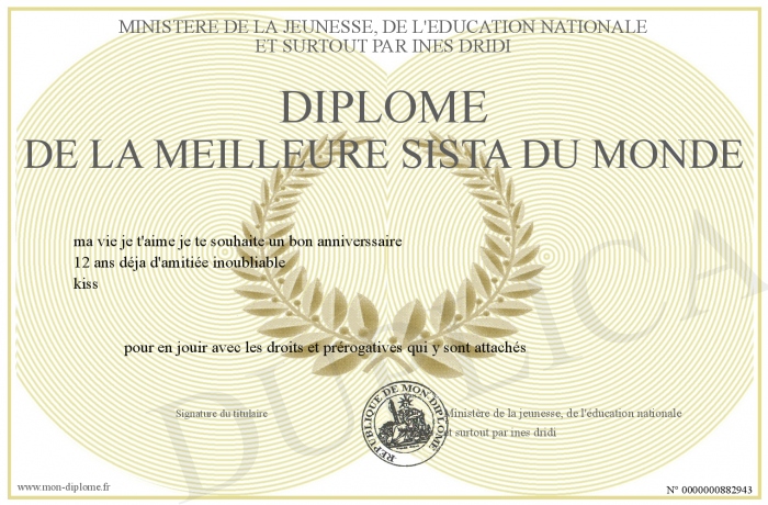 Envoyez par email votre Diplôme de la meilleure sista du monde personalisé