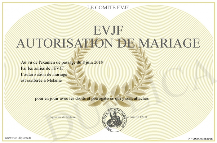 Envoyez par email votre EVJF autorisation de Mariage personalisé